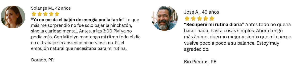¿Es seguro? ¿Tiene efectos secundarios?R: Mitolyn se fabrica en instalaciones registradas por la FDA y certificadas por GMP (Buenas Prácticas de Manufactura) en EE. UU. Su fórmula es 100% natural, libre de lácteos, soja y transgénicos (GMOs). No genera dependencia ni "bajones" de energía.